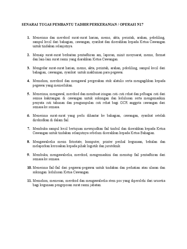 Senarai Tugas Pembantu Operasi N11 Pdf